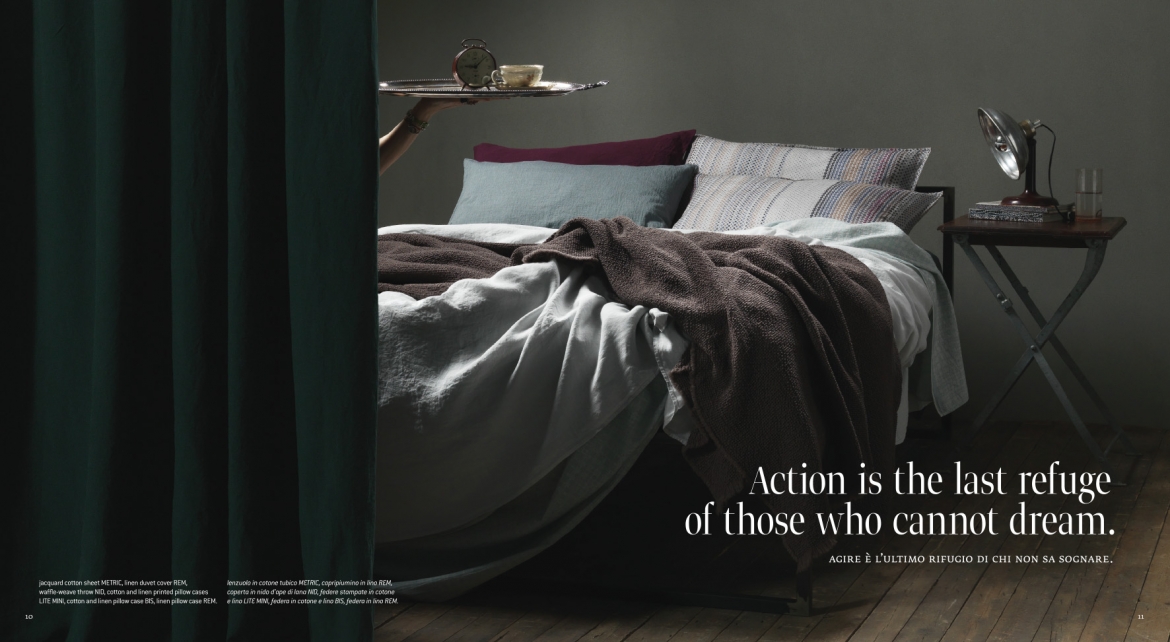 Strong light and shade effects, intense and deep colours, small iconic objects characterizing a Victorian-like environment, where Society Limonta’s textile experience is the main actor on stage.
